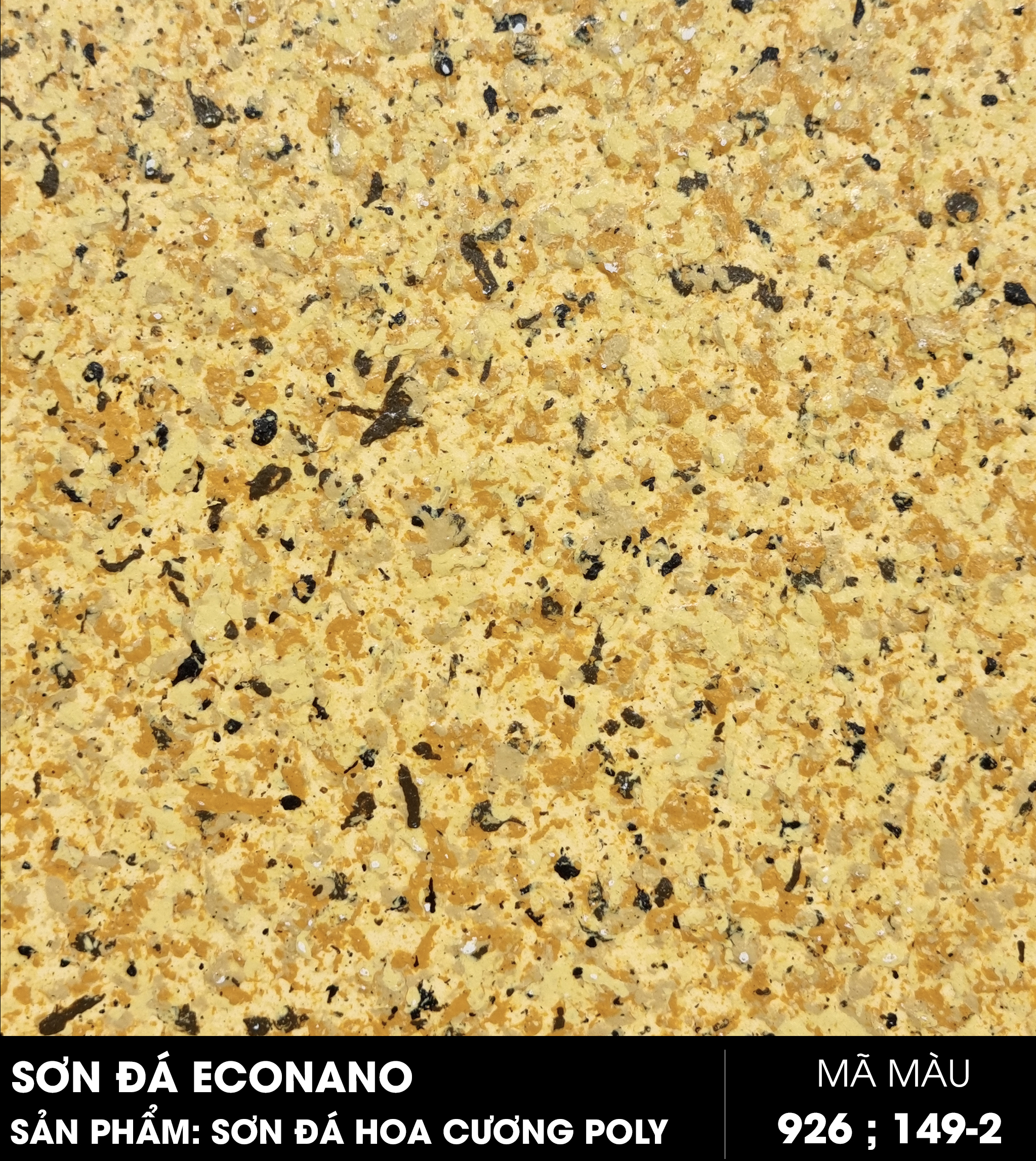 Sơn đá hoa cương Poly – bề mặt phẳng Econano mã màu 926; 149-2 mang đến sự kết hợp hoàn hảo giữa vẻ đẹp thiên nhiên và độ bền vượt trội. Với tông vàng sáng kết hợp với các hạt đá nâu, đen và xám, mã màu này tạo nên một không gian sang trọng, hiện đại và dễ dàng ứng dụng trong nhiều công trình khác nhau.
