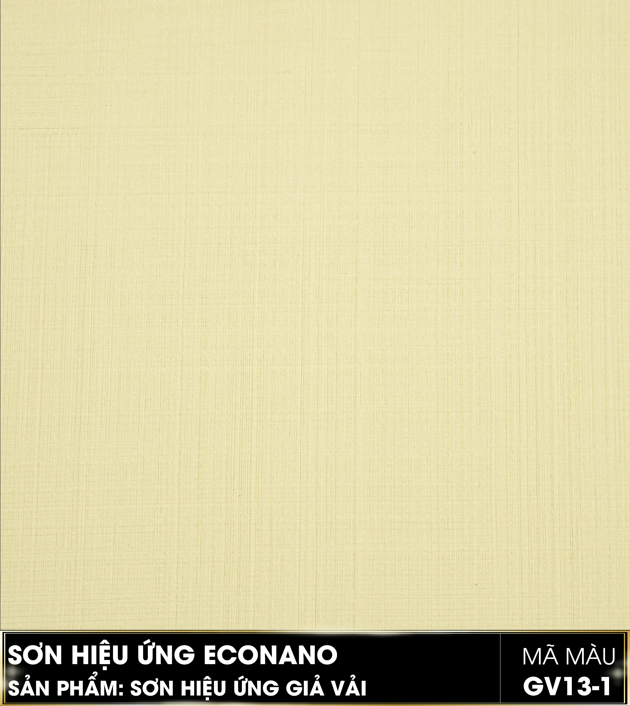 Sơn hiệu ứng giả vải GV13-1 là dòng sơn trang trí cao cấp thuộc thương hiệu Econano, được thiết kế nhằm tái hiện hiệu ứng sợi vải đan xen trên bề mặt tường. Với gam vàng kem nhẹ, sản phẩm mang đến cảm giác ấm áp, sáng sủa và dễ chịu – phù hợp với những không gian đề cao sự thư giãn và thanh lịch.